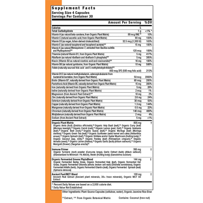 - No Synthetic Ingredients: 100% whole food derived nutrients for optimum absorption